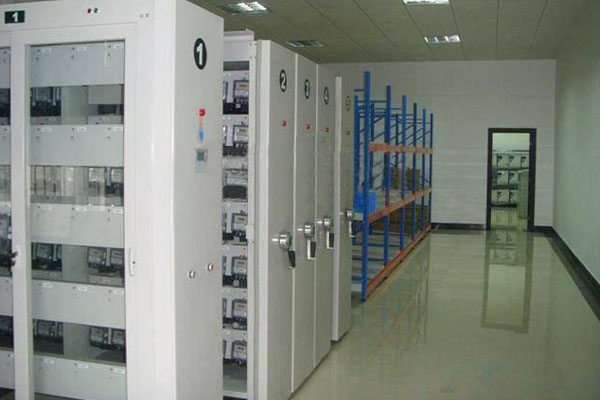 電表密集架又稱電表密集柜,是在復(fù)柱式雙面固定架的底座上安裝軸輪,能沿地面鋪設(shè)的小導(dǎo)軌直線移動(dòng)的架子,可根據(jù)需要將多個(gè)架子靠攏或分開。